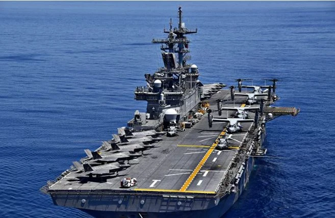 Tàu tấn công đổ bộ USS Wasp (LHD 1) đi qua vùng biển của Biển Đông. Ảnh: PETTY OFFICER 1ST CLASSS DANIEL B/SPUTNIK