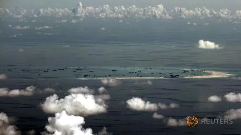 Ảnh chụp ngày 11-5-2015 cho thấy tàu thuyền Trung Quốc hoạt động phi pháp ở đá Vành Khăn thuộc quần đảo Trường Sa của Việt Nam. Ảnh: Reuters