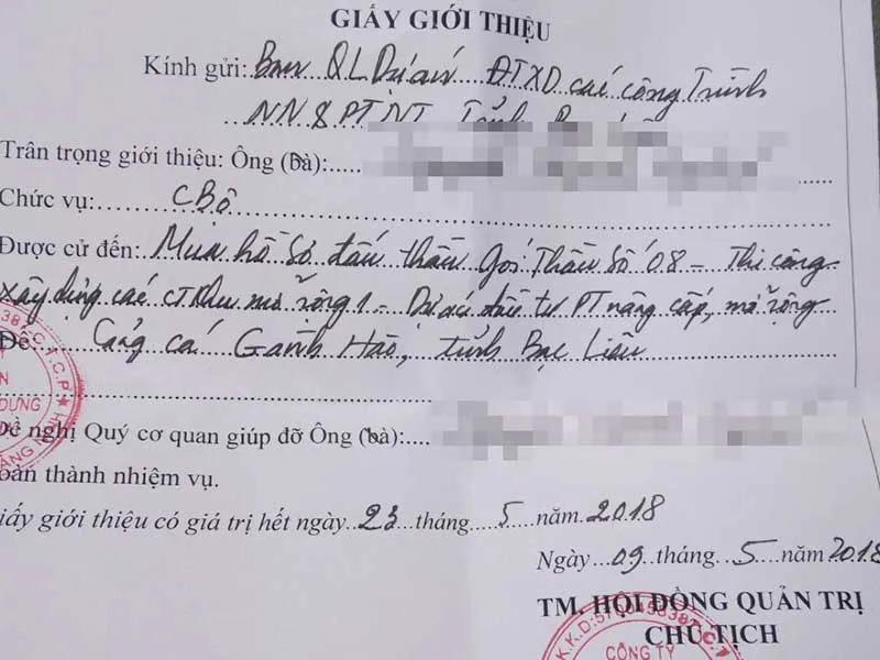 Giấy giới thiệu của một công ty ở Quảng Ninh đi mua hồ sơ đấu thầu.
