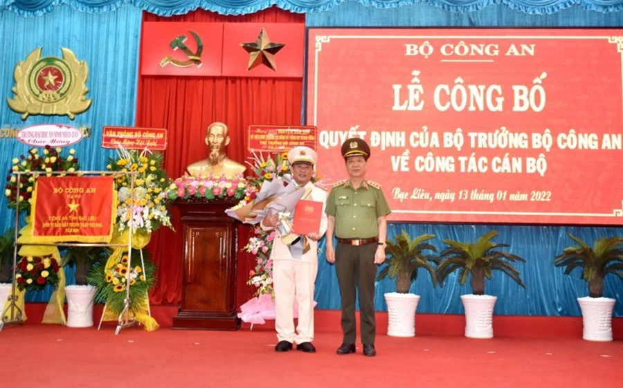 Sáng 13-1, tại Công an tỉnh Bạc Liêu, Bộ Công an tổ chức Lễ công bố quyết định của Bộ trưởng Bộ Công an về công tác cán bộ.
