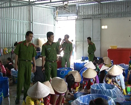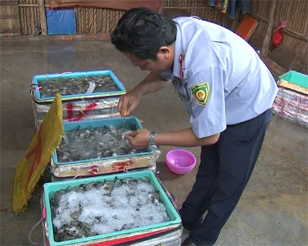 Công an phát hiện công nhân đang bơm tạp chất vào tôm.
