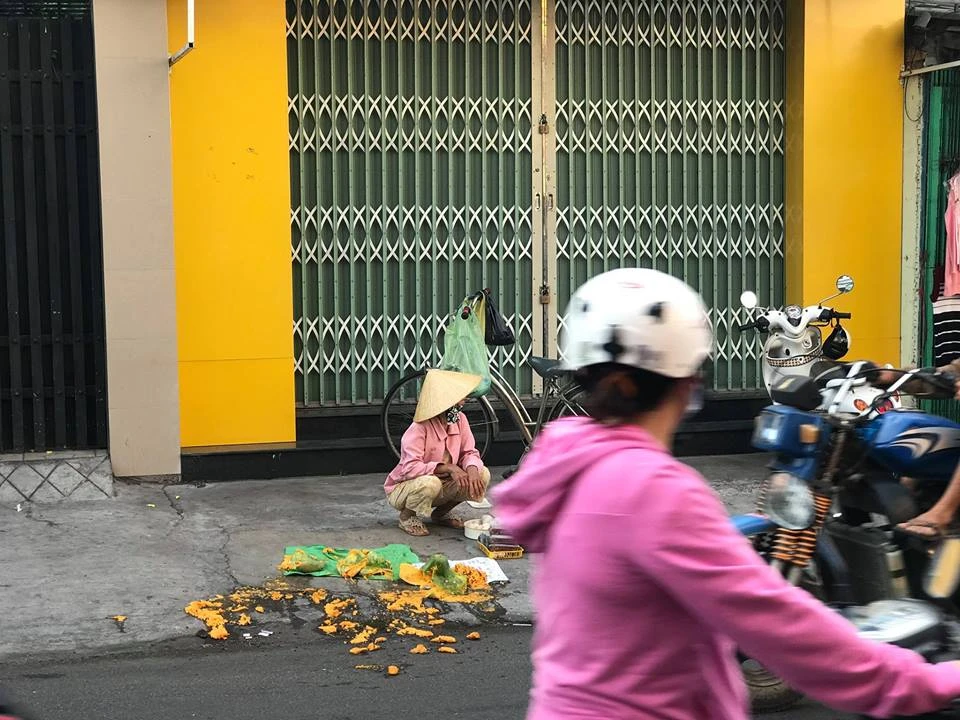 Ngày 9-4, một tài khoản Facebook đưa nhiều hình ảnh về việc một phụ nữ ngồi bán hàng rong đã bị ô tô cán nát khoảng ba trái đu đủ mà người phụ nữ này bày bán trước vỉa hè.
