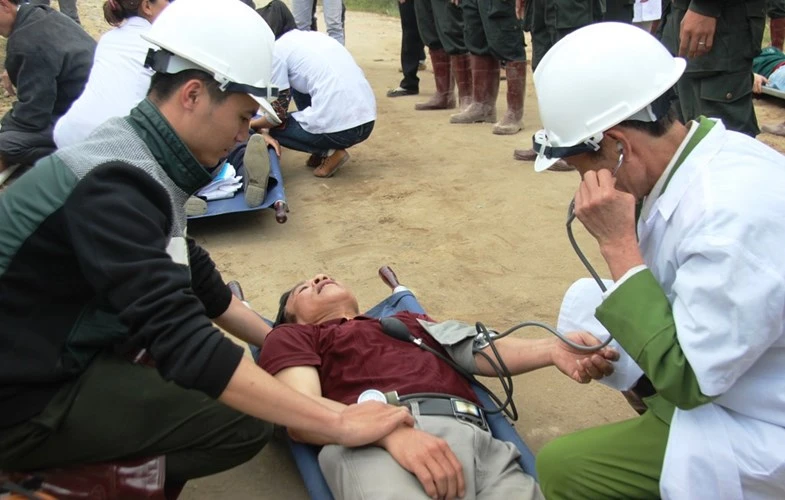 Về phác đồ cấp cứu, đây là một phương án hết sức tế nhị. Ngay từ trước đêm đưa nạn nhân ra, chúng tôi đã có phác đồ và đã báo cáo Bộ trưởng Y tế. Tiếp đó, phương án là phải biến trạm chỉ huy cứu hộ, trạm y tế thành trạm cứu thương. Chúng tôi báo với bí thư Tỉnh ủy và Bộ trưởng Y tế rằng phải dồn hết lực tại đó. Đồng thời, không được bỏ qua bất kỳ phương án nào, kể cả việc phải đưa ra phương án xấu nhất là hầm sập và mọi người bị chết.