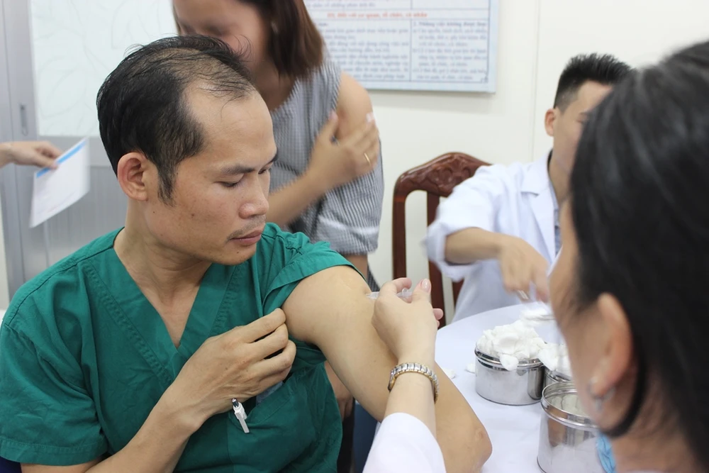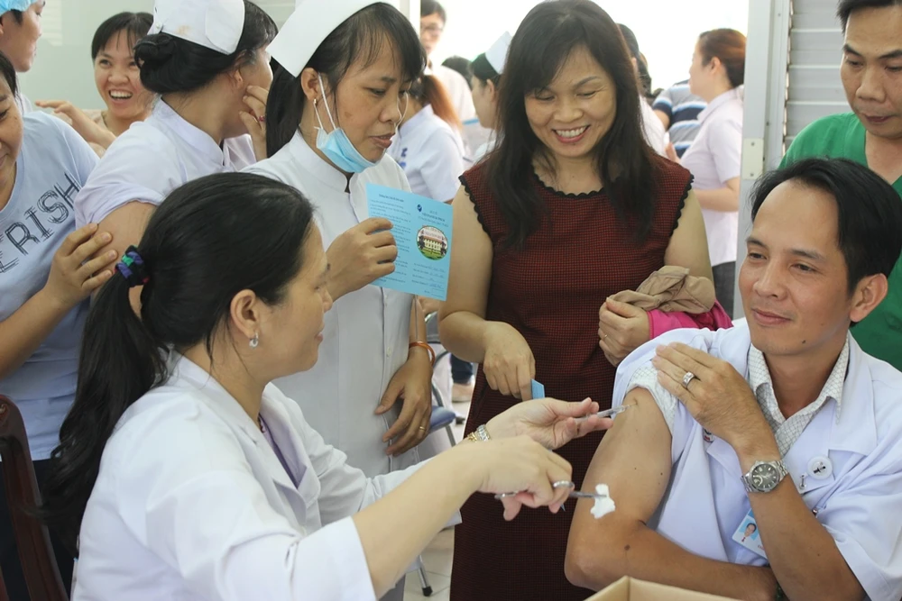 Những ngày qua, cơ quan y tế BV Chợ Rẫy (TP.HCM) đã tổ chức chích ngừa bệnh cúm cho các bác sĩ, điều dưỡng, anh bảo vệ, lái xe, chị lao công... đang làm việc tại bệnh viện. Do đặc thù công việc tiếp xúc với rất nhiều bệnh nhân mỗi ngày, đây là những đối tượng có nguy cơ bị nhiễm cúm cao.