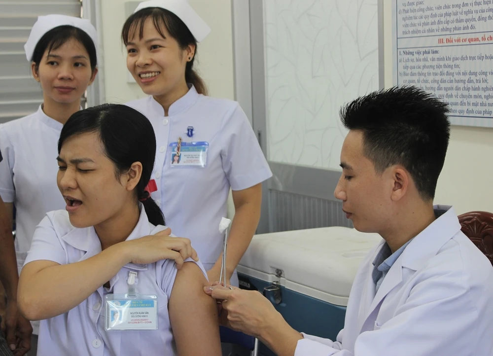 Một bác sĩ không hề... ngán chích ngừa. Ảnh: HL