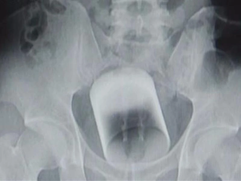 Shanghaiist cho biết, Anh ta đã chạy đến bệnh viện vào lúc 2 giờ sáng, la hét nhờ giúp đỡ. Các bác sĩ nhanh chóng chụp X- quang và phát hiện ra nguyên nhân. Đó là một chiếc cốc thủy tinh, cao 8 cm và có đường kính 7 cm, nằm phía trên trực tràng của bệnh nhân. Bác sĩ nói rằng, chiếc cốc có thể lấy mạng anh ta bất cứ lúc nào nếu nó không được nhanh chóng lấy ra.