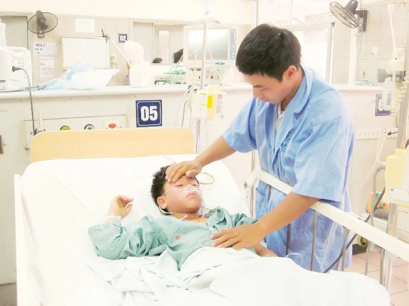 Trường hợp bé Duy Khang, chín tuổi, ngụ huyện Châu Thành thì nghiêm trọng hơn. Bé nhập viện trong tình trạng tiêu phân đen, nôn ra máu, xuất huyết dưới da và than đau bụng vùng thượng vị. Qua khai thác tình hình bệnh trạng của bé, tôi được biết trước đó bốn ngày bé bị sốt 39-40 độ, đau người, đau cơ khớp, đau đầu. Mẹ cháu tự mua thuốc Aspirin pH8 về cho con uống. Bé Khang có giảm sốt chút ít và cứ thế bé được mẹ cho uống Aspirin cho đến hôm nhập viện.