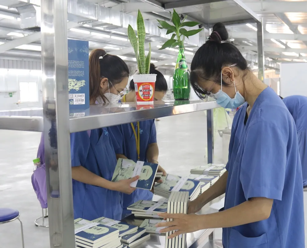 Trước đây, hội trường buổi ra mắt sách vốn là nơi điều trị bệnh nhân (BN) COVID-19, sau này trở thành giảng đường để các y, BS thực tập. Những chiếc kệ trưng bày sách vốn là kệ đựng dụng cụ, trang thiết bị y tế. Các y, BS UCICC đã tận tay sắp xếp, trang trí và chuẩn bị cho buổi ra mắt sách này.