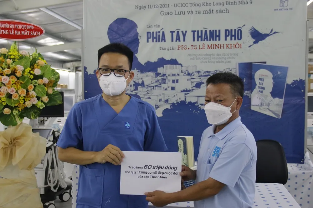 Chiều ngày 11-12, bác sĩ Lê Minh Khôi đã tổ chức buổi ra mắt sách Phía Tây thành phố tại Trung tâm Hồi sức COVID-19 (UCICC) thuộc BV Đại học Y Dược TP.HCM. Buổi ra mắt được diễn ra với hai hình thức: offline cho các y, bác sĩ (BS) làm việc tại UCICC và online qua zoom.