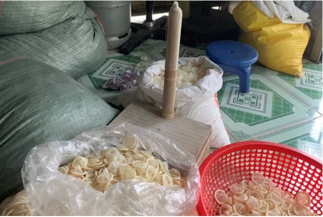 Bao cao su đã qua sử dụng đang được tái chế. Ảnh: QLTT