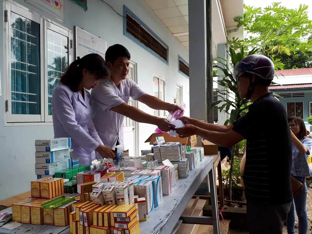 Khám bệnh xong được phát thuốc miễn phí. Ảnh: HÀ PHƯỢNG