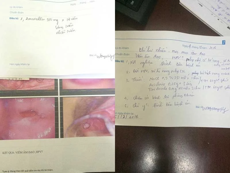 Tại đây, chị phải đóng lệ phí 1,2 triệu đồng tiền khám. Sau đó chị được một nữ bác sĩ người Trung Quốc vào khám bệnh. Sau khi khám bằng mắt và hỏi một số triệu chứng thông qua một cô phiên dịch, bà cho biết chị bị bệnh sùi mào gà do virus HPV. Đây là một loại bệnh nguy hiểm, nếu không lập tức nhập viện điều trị thì mỗi ngày kéo dài là mỗi ngày nguy cơ ung thư đến gần.