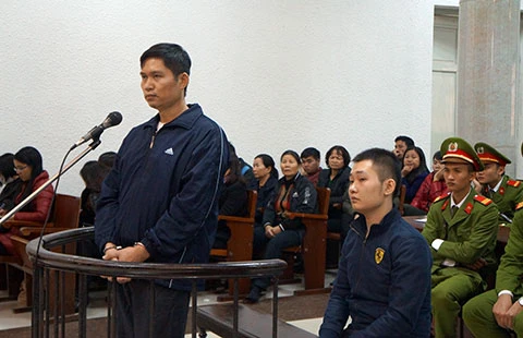 Hai bị cáo Tường (đứng) và Khánh tại phiên tòa. Ảnh: Đ.MINH