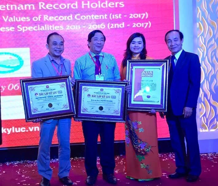 BS Nguyễn Văn Xáng (thứ hai từ trái qua) nhận bằng kỷ lục gia. Ảnh: CÔNG THI