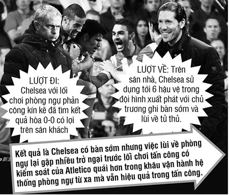 24 giờ sau, HLV Simeone cho cả thế giới biết thế nào là phòng ngự phản công khi ông buộc thầy trò Mourinho nổi tiếng với lối chơi này phải ngậm ngùi thua cuộc ngay trên sân nhà Stamford Bridge.