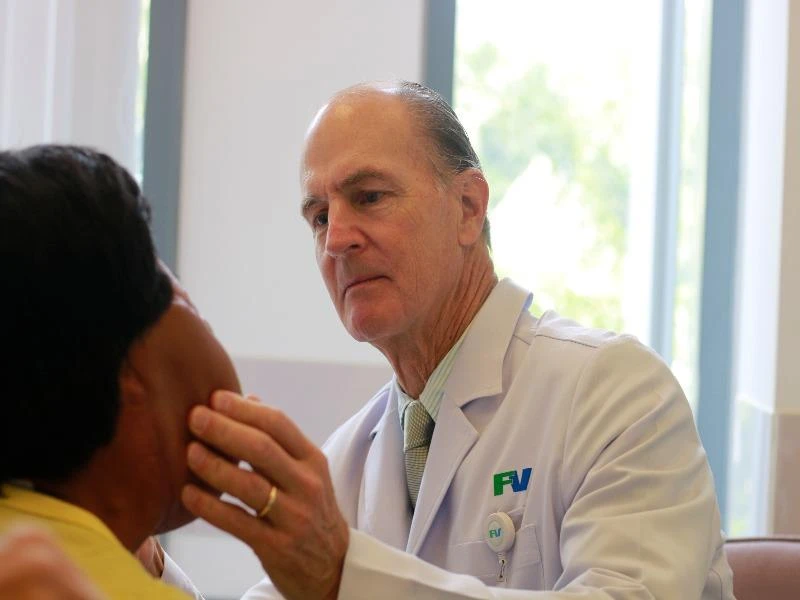 Bác sĩ McKay McKinnon đang xem xét dị tật cho một bệnh nhân. Ảnh: NU