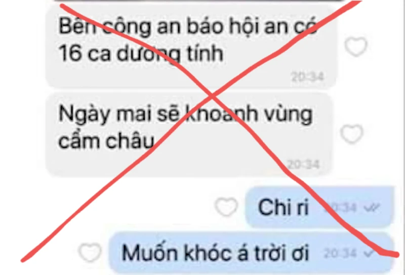 Trước đó, tối 8 và khuya 9-3, mạng xã hội lan truyền hình ảnh có thông tin “Bên công an báo Hội An có 16 ca dương tính” COVID-19. Công an Hội An đã khẳng định không hề có thông tin này và đang vào cuộc điều tra xác minh người tung tin thất thiệt gây hoang mang dư luận.