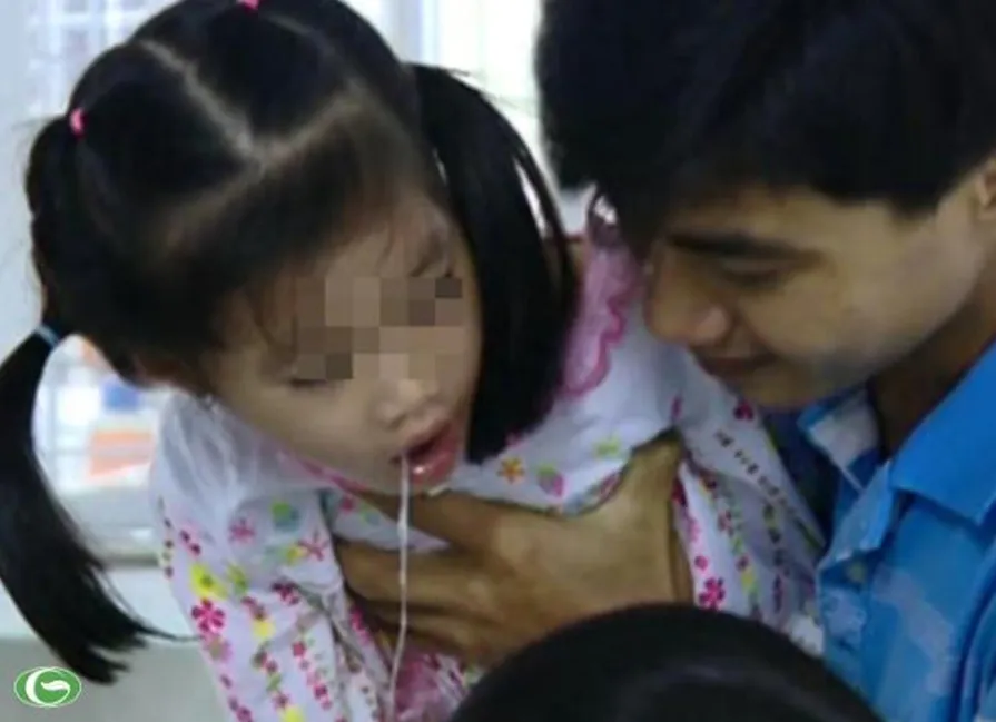 Hình ảnh bé gái ói mửa đăng kèm bài viết. Ảnh: TRẦN NGỌC