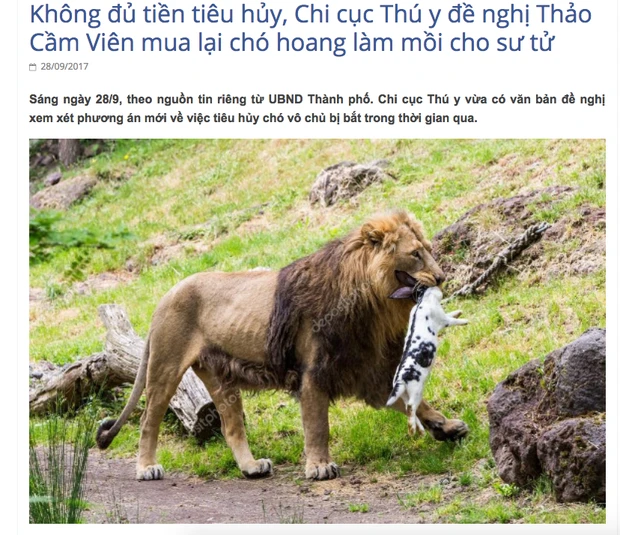 Bài viết có nội dung: “Trong bản đề xuất gửi lên UBND (UBND TP.HCM – PV), Chi cục Thú y mạnh dạn đề nghị thay vì đem tiêu hủy, chi cục sẽ làm việc với Thảo Cầm Viên về việc tiêu thụ số chó hoang. Cụ thể, những chú chó vô chủ sẽ được dùng vào mục đích làm thức ăn cho các loài thú săn mồi đang được nuôi dưỡng tại Thảo Cầm Viên, điển hình là sư tử và các loài hổ quý hiếm tại đây”.