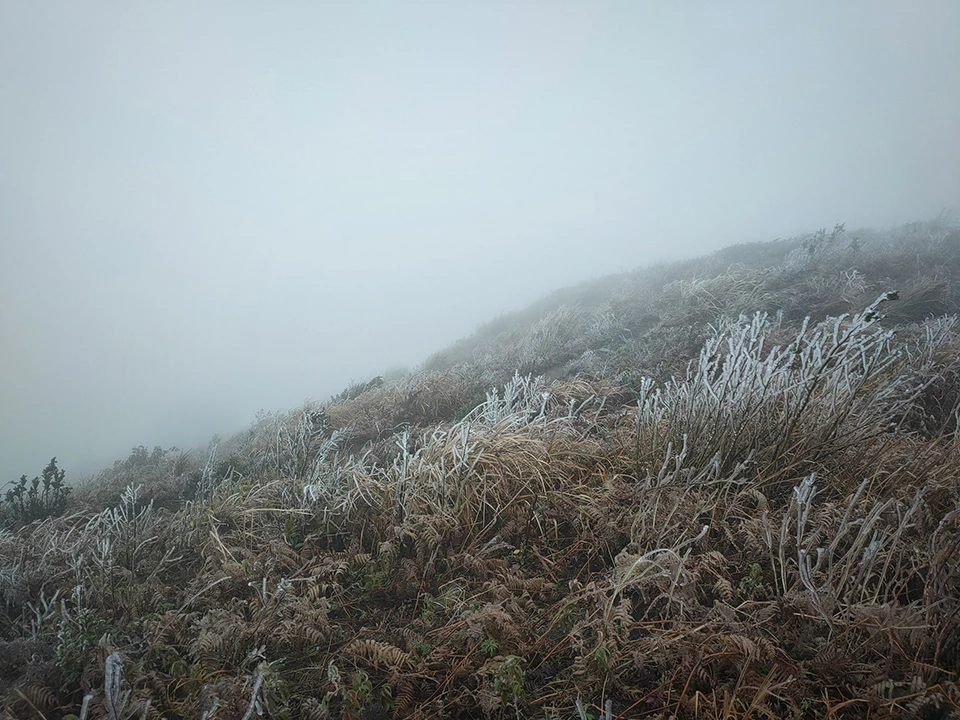 Núi Lão Thần, xã Y Tý (Bát Xát, Lào Cai) xuất hiện băng giá (Ảnh: báo Lào Cai)