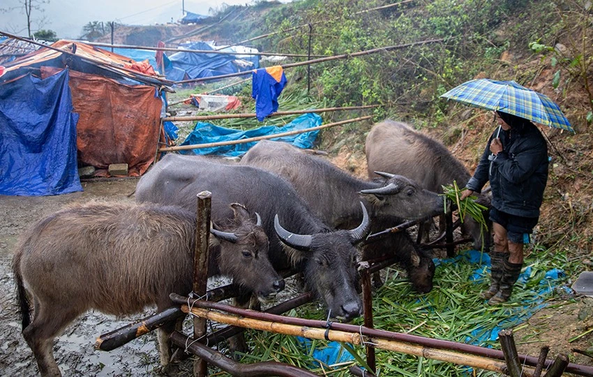 Người dân ở khu vực vùng cao của Lào Cai phải lùa trâu xuống khu vực thấp hơn, làm lều tránh rét cho trâu (Ảnh: Báo Lào Cai)
