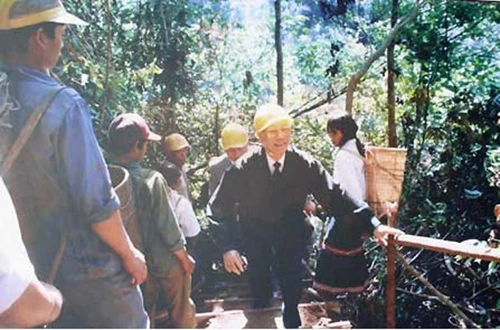 Cố Thủ tướng Võ Văn Kiệt kiểm tra thực tế thi công đường dây 500 kV ở khu vực khó khăn, hiểm nguy