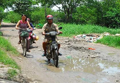 Tuyến đường Hoàng Đạo Thủy nằm trong khu quy hoạch treo của khu đô thị Nam TP lầy lội, ô nhiễm. (Ảnh chụp chiều 25-7) Ảnh: HTD