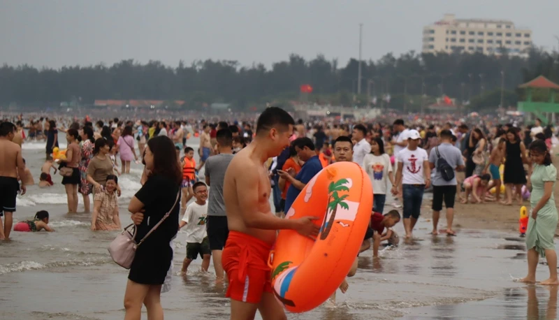 Trên bờ, dưới biển Cửa Lò rất đông đúc.