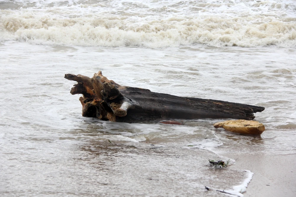 Người dân đã ra biển "bới tìm" những gốc cây có nhiều rễ, hình thù lạ mang về dùng. Một số gỗ được cho trên tàu đánh cá ngư dân bị sóng đánh vào bờ.