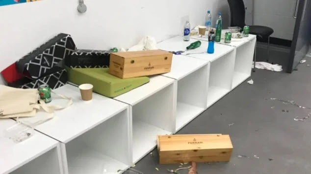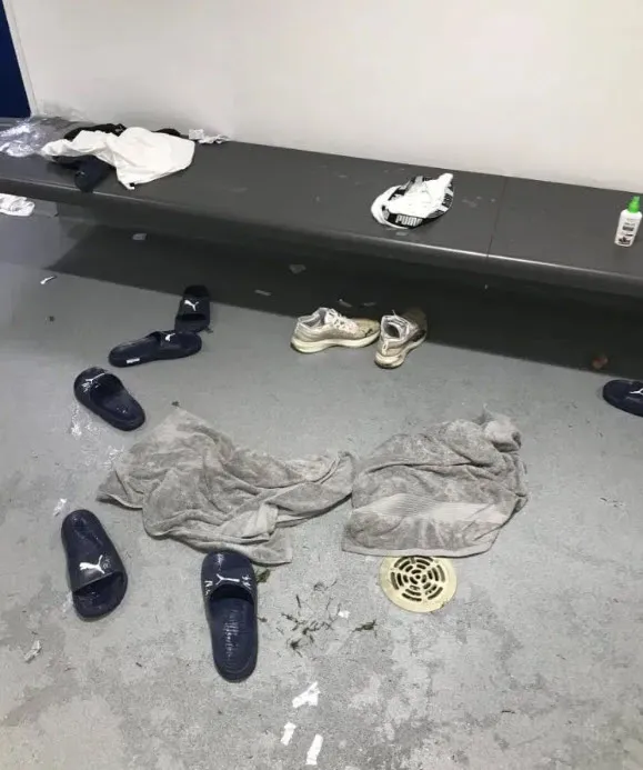 Hình ảnh khó coi bên trong phòng thay đồ tuyển Ý. ẢNH: THE SUN