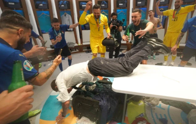 Dưới đây là hình ảnh "bãi chiến trường" bên trong phòng thay đồ tuyển Ý sau trận chung kết Euro 2020: