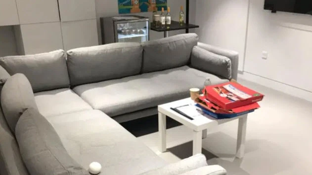 Trong khi đó, phòng thay đồ của tuyển Anh thì mọi thứ rất khác. Người ta chỉ nhìn thấy duy nhất những hộp bánh pizza được xếp ngay ngắn trên bàn. Các vật dụng còn lại được các cầu thủ Anh dọn dẹp gọn gàng.