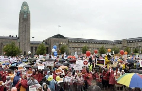 Khoảng 30.000 người biểu tình ở quảng trường lớn tại Helsinki để phản đối cắt giảm chi tiêu.