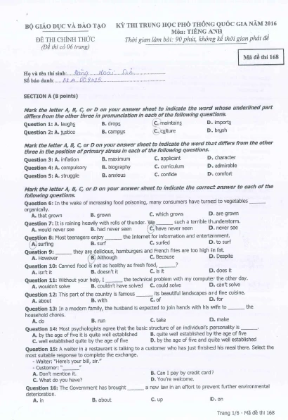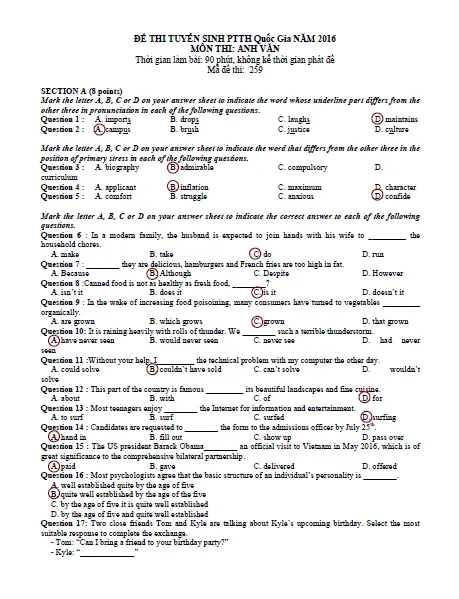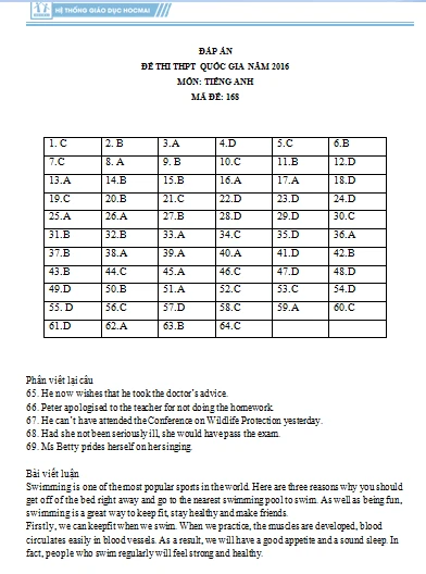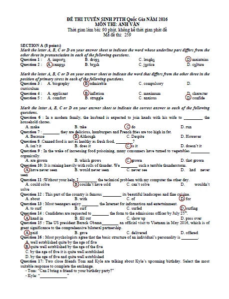 (PLO) - Mời bạn đọc cùng xem đề thi, bài giải môn Anh văn kỳ thi THPT quốc gia 2016.