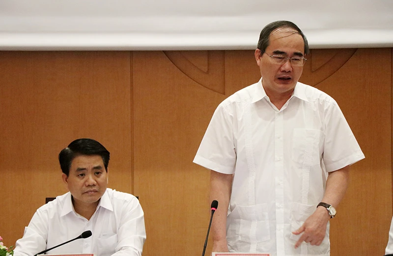 Sáng nay 29-7, Đoàn công tác của TP.HCM do Bí thư Thành ủy Nguyễn Thiện Nhân dẫn đầu đã có buổi làm việc, trao đổi kinh nghiệm với UBND TP Hà Nội trong công tác cải cách hành chính; xây dựng Chính phủ điện tử; kêu gọi xúc tiến đầu tư trong và ngoài nước; thực hiện tiết kiệm chi ngân sách.