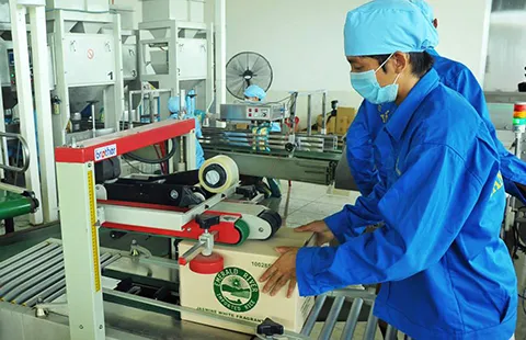 Đóng gói gạo chất lượng cao để xuất khẩu tại một doanh nghiệp. Ảnh: QH