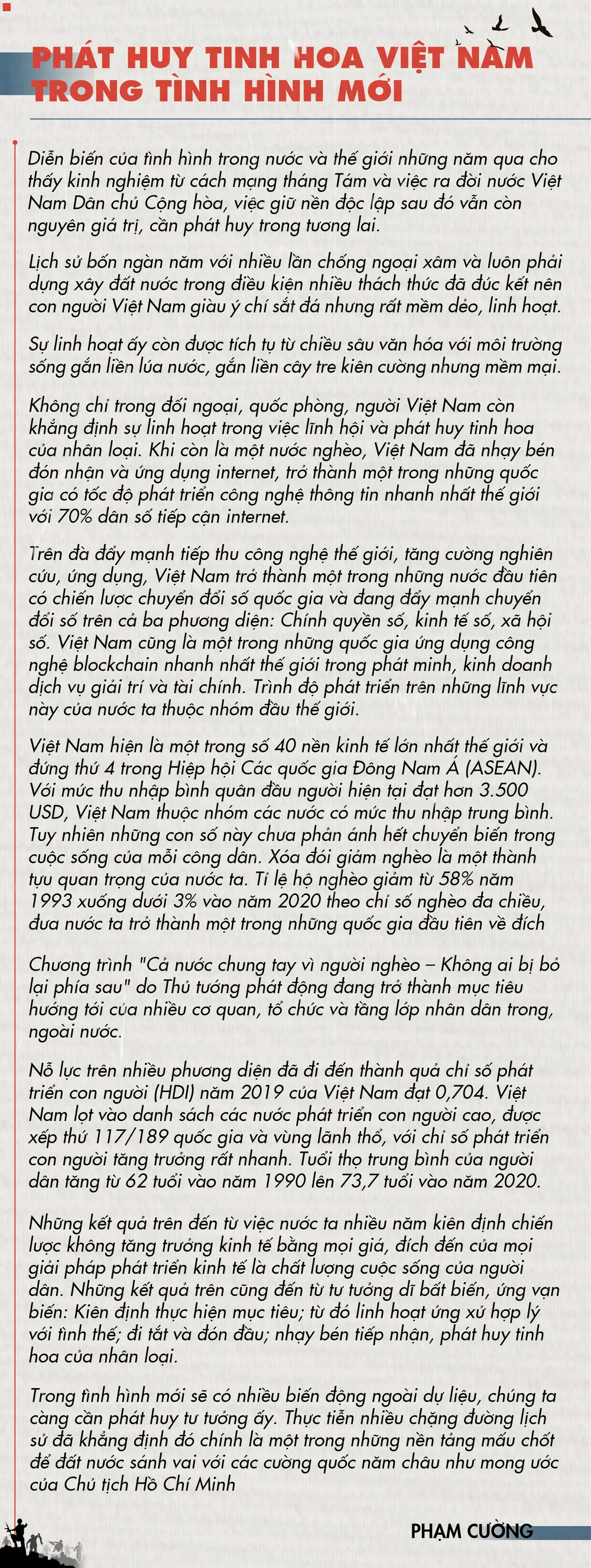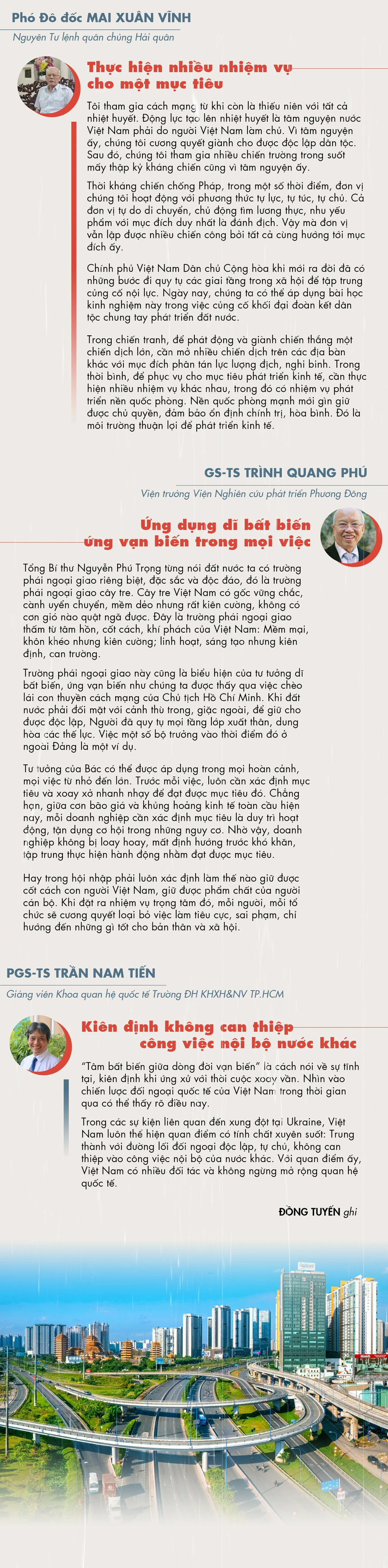 . Tình hình trong, ngoài nước đã khác xa thời điểm mới giành độc lập nhưng vẫn tương đồng về bản chất trong nhiều vấn đề. Ông có thể chia sẻ những điều tâm huyết nhất xung quanh câu chuyện dĩ bất biến, ứng vạn biến khi nhìn về tương lai?