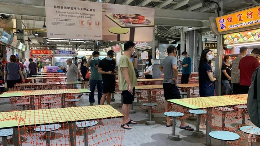 Các khu ẩm thực hồi cuối tháng 5 chỉ được phép bán mang về. Ảnh: CHANNEL NEWS ASIA