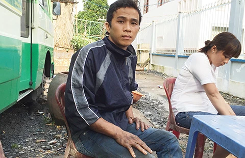 Trần Hoàng Minh ở tiệm sửa xe của anh tại Cần Giờ. Ảnh: PL