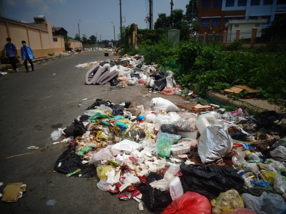 Đường đi vào ký túc xá Trường Cao đẳng Kỹ thuật Đồng Nai ngập rác