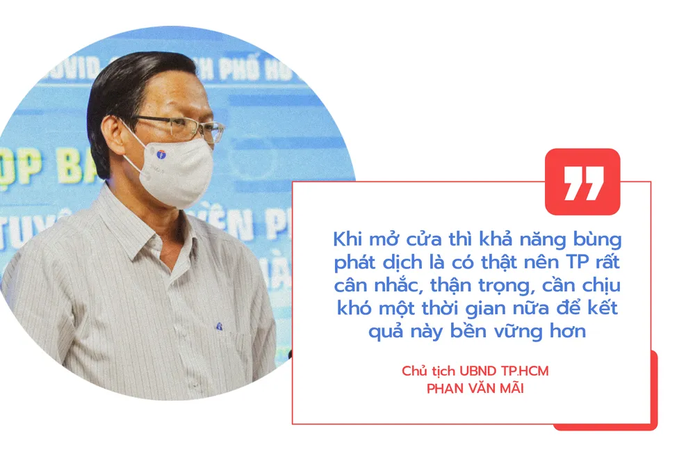 Trả lời với báo chí, ông Phan Văn Mãi cho rằng với sức ép giãn cách kéo dài, TP buộc phải mở cửa. Tuy nhiên khi mở ra khả năng bùng phát dịch là có thật và đã diễn ra nhiều nước trên thế giới. Đây là một trong những lý do TP.HCM rất cân nhắc. Vì vậy, cần thận trọng, cần chịu khó một thời gian nữa để kết quả này bền vững hơn.