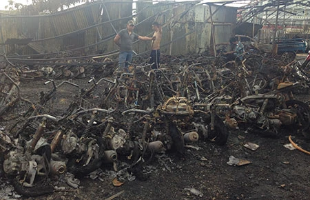 Do sự lơ là trong quản lý, chủ quan của người dân, hậu quả của vụ cháy rụi trên 300 chiếc xe máy rất khó khắc phục được. Ảnh: MP