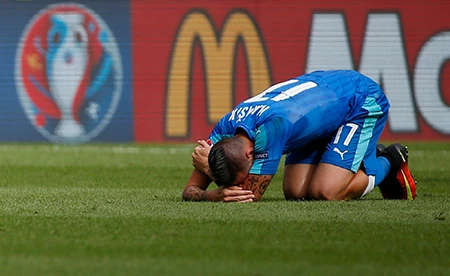 Không muốn chia điểm với Slovakia, Bale cùng các đồng đội gia tăng sức ép và liên tục tấn công vào cuối trận. Phút 81, từ pha đột phá của Ramsey, bóng nảy đến chân Robson-Kanu, nhanh như cắt, tiền đạo này ập vào tung cú sút sệt đưa bóng qua hai chân hậu vệ Jan Durica vào góc xa làm thủng lưới của thủ môn Kozacik, ấn định chiến thắng 2-1 cho Xứ Wales.