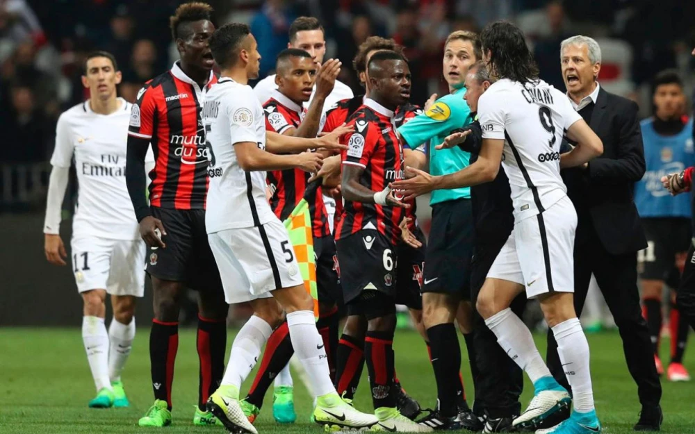 Trận Nice - PSG rất nóng khi hai cầu thủ PSG bị đuổi.