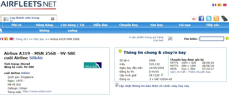 Theo thông tin từ www.airfleet.net, máy bay A319 có số xuất xưởng 2568 thực hiện chuyến bay đầu tiên ngày 14-9-2005, hãng hàng không khai thác gần nhất là hãng hàng không giá rẻ của Singapore.