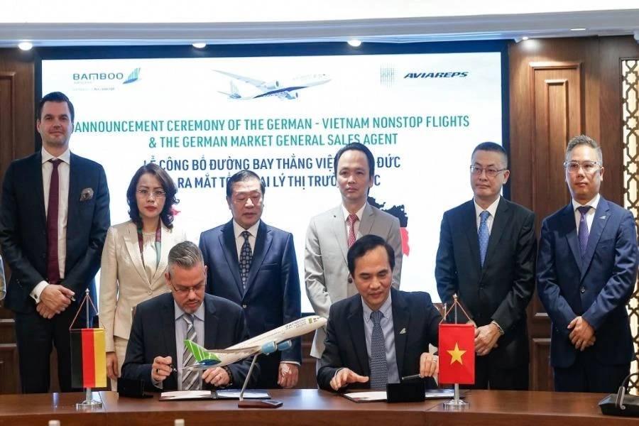 Sáng 24-1, hãng hàng không Bamboo Airways chính thức công bố đường bay thẳng Việt Nam - Đức, ký kết và ra mắt tổng đại lý của hãng tại Đức.