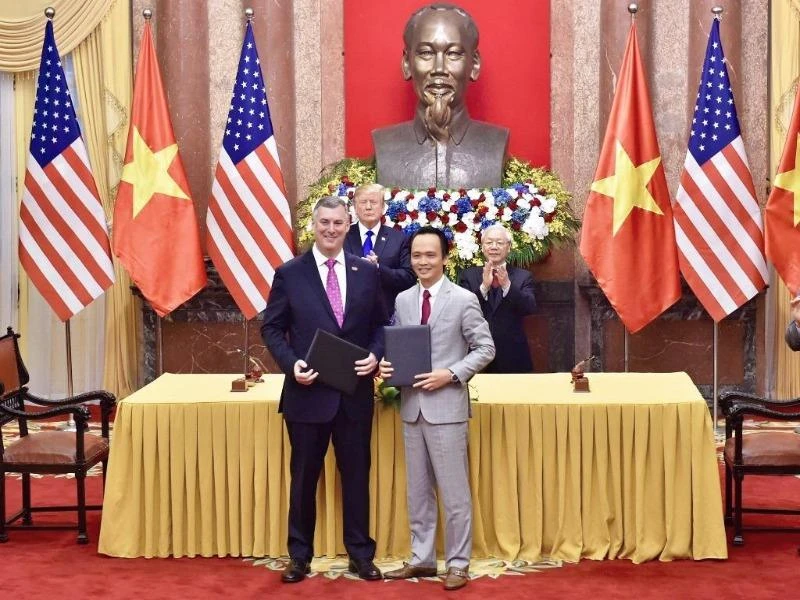 Việc ký kết được diễn ra trước sự chứng kiến của Tổng Bí thư, Chủ tịch nước Việt Nam Nguyễn Phú Trọng và Tổng thống Mỹ Donald Trump.