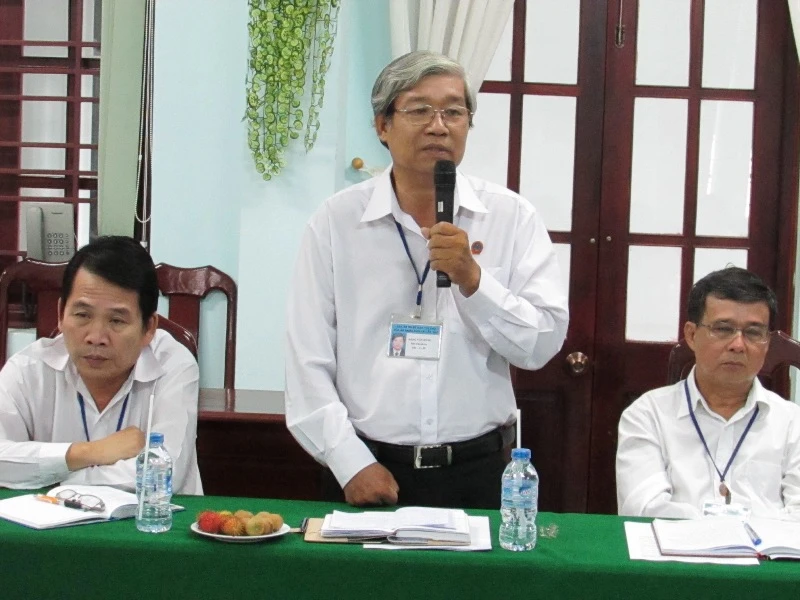 Phó Chánh án TAND TP Cần Thơ Đặng Văn Hùng góp ý tại buổi làm việc với Chánh án TAND Tối cao ngày 24-8. Ảnh: N.NAM