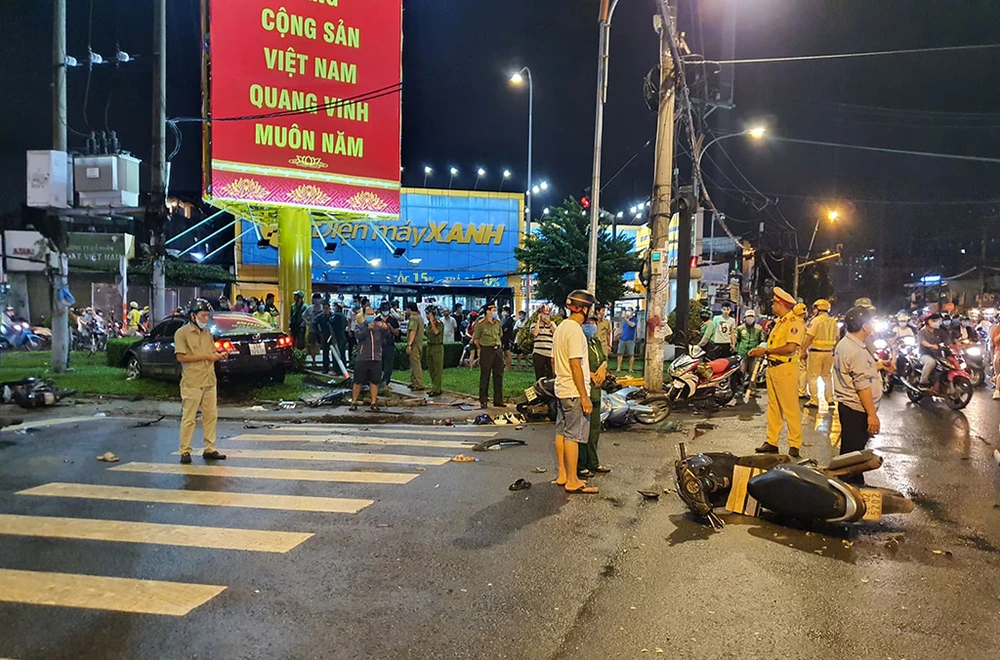 Trước đó, lúc 19 giờ 30, một vụ tai nạn nghiêm trọng giữa một xe ô tô và nhiều xe máy tại giao lộ Ung Văn Khiêm và Xô Viết Nghệ Tĩnh đã khiến nhiều người bị thương. Vụ tai nạn khiến tám xe máy bị đâm, năm người nhập viện cấp cứu.