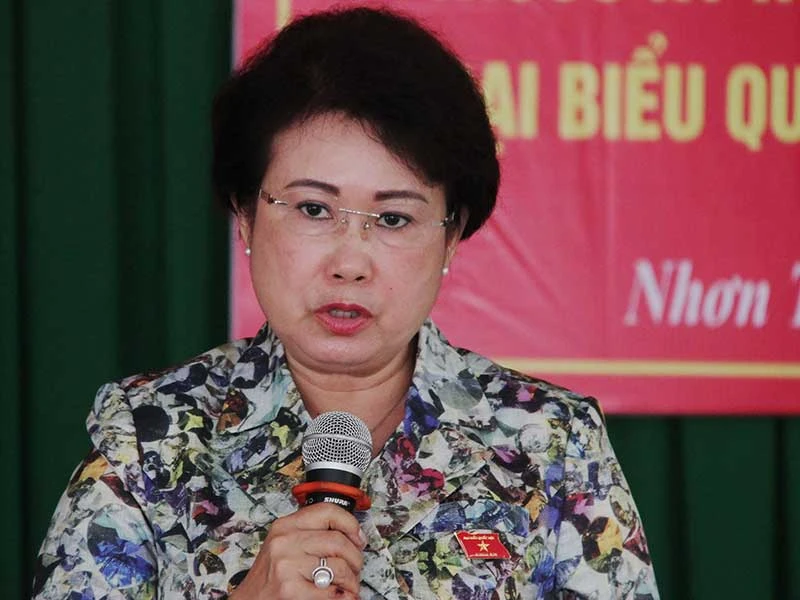 Bà Mỹ Thanh trong cuộc tiếp xúc cử tri Đồng Nai ngày 2-5. Ảnh: Vũ Hội